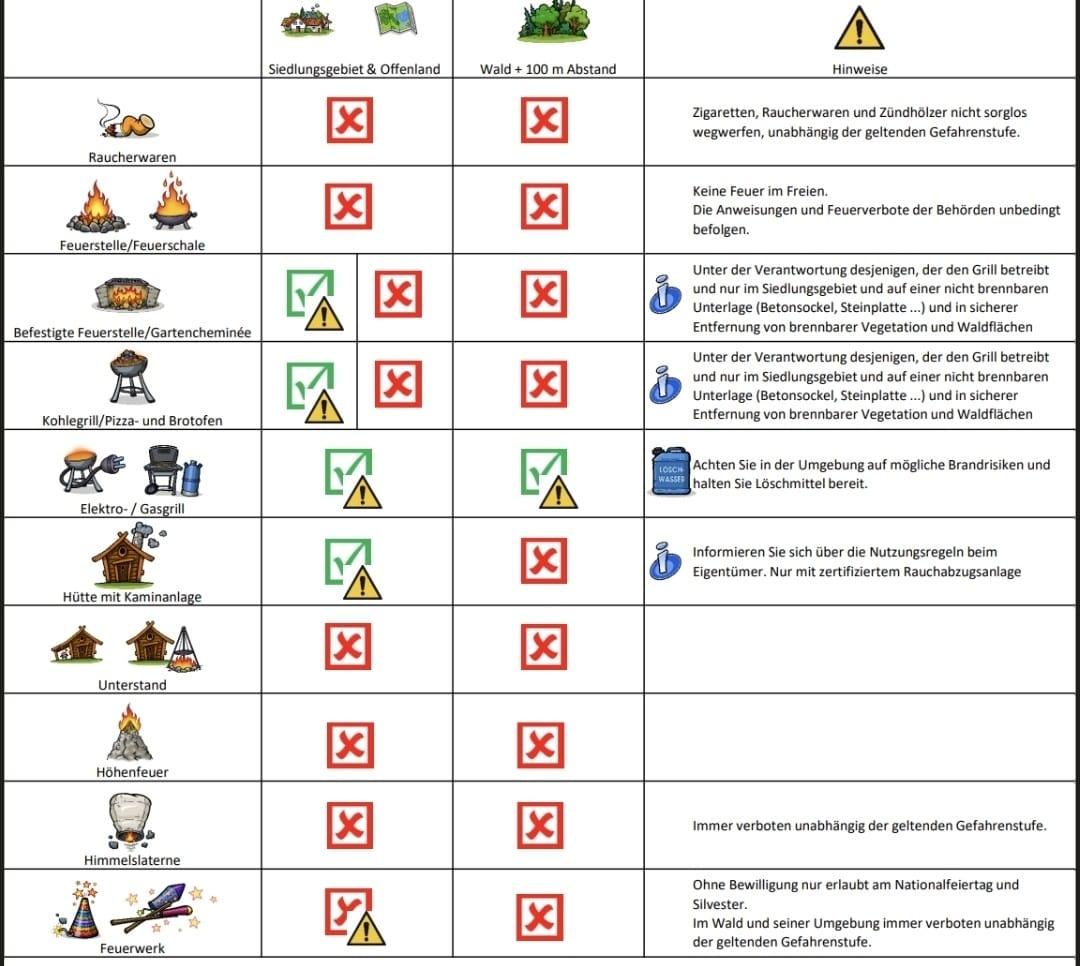 Aufgrund der aktuell trockenen Wetterlage und den jüngsten Flächenbränden in Bellwald und Bitsch gilt ab sofort ein allgemeines Feuerverbot auf dem gesamten Gemeindegebiet von Mörel-Filet. Wir bitten die Bevölkerung, sich strikt an diese Anweisung zu halten.